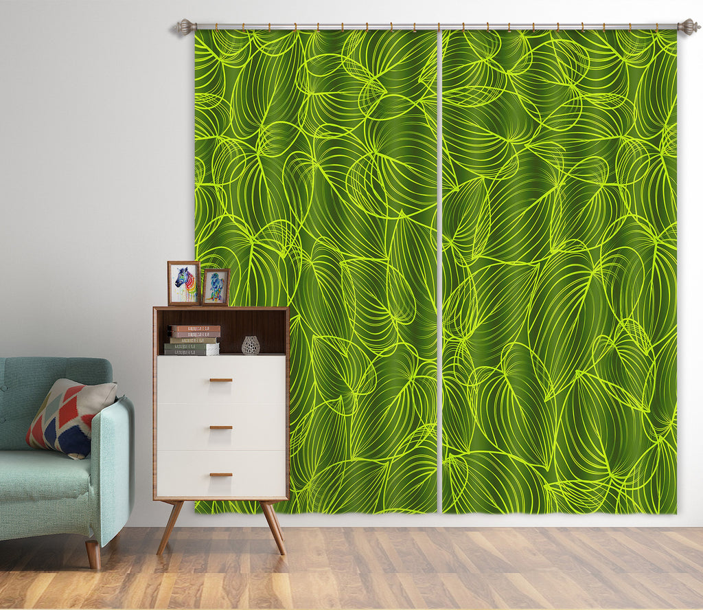 3D Green Leaf Lines 11142 Kashmira Jayaprakash Curtain Curtains Drapes Sinsin