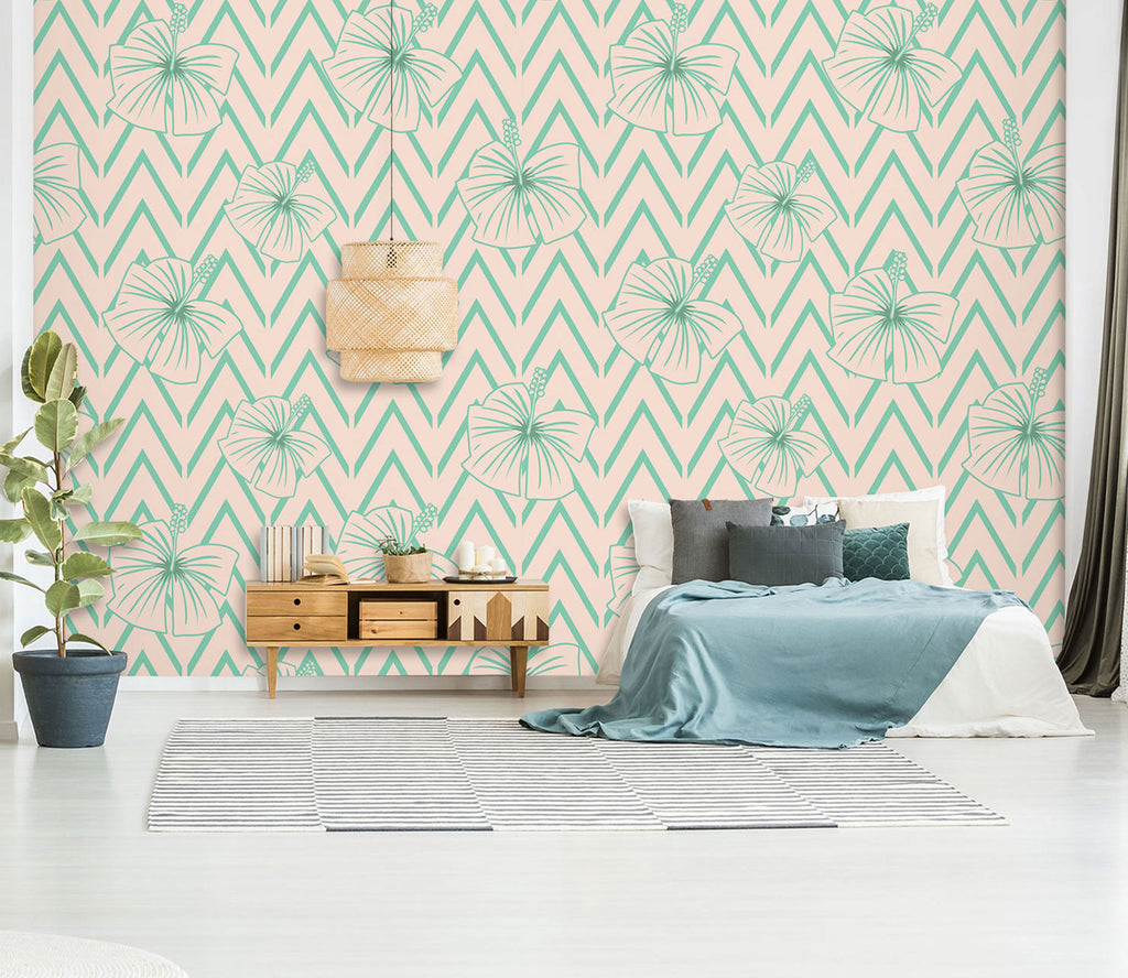 3D Green Line Flowers 98128 Kasumi Loffler Wall Mural Wall Murals Sinsin
