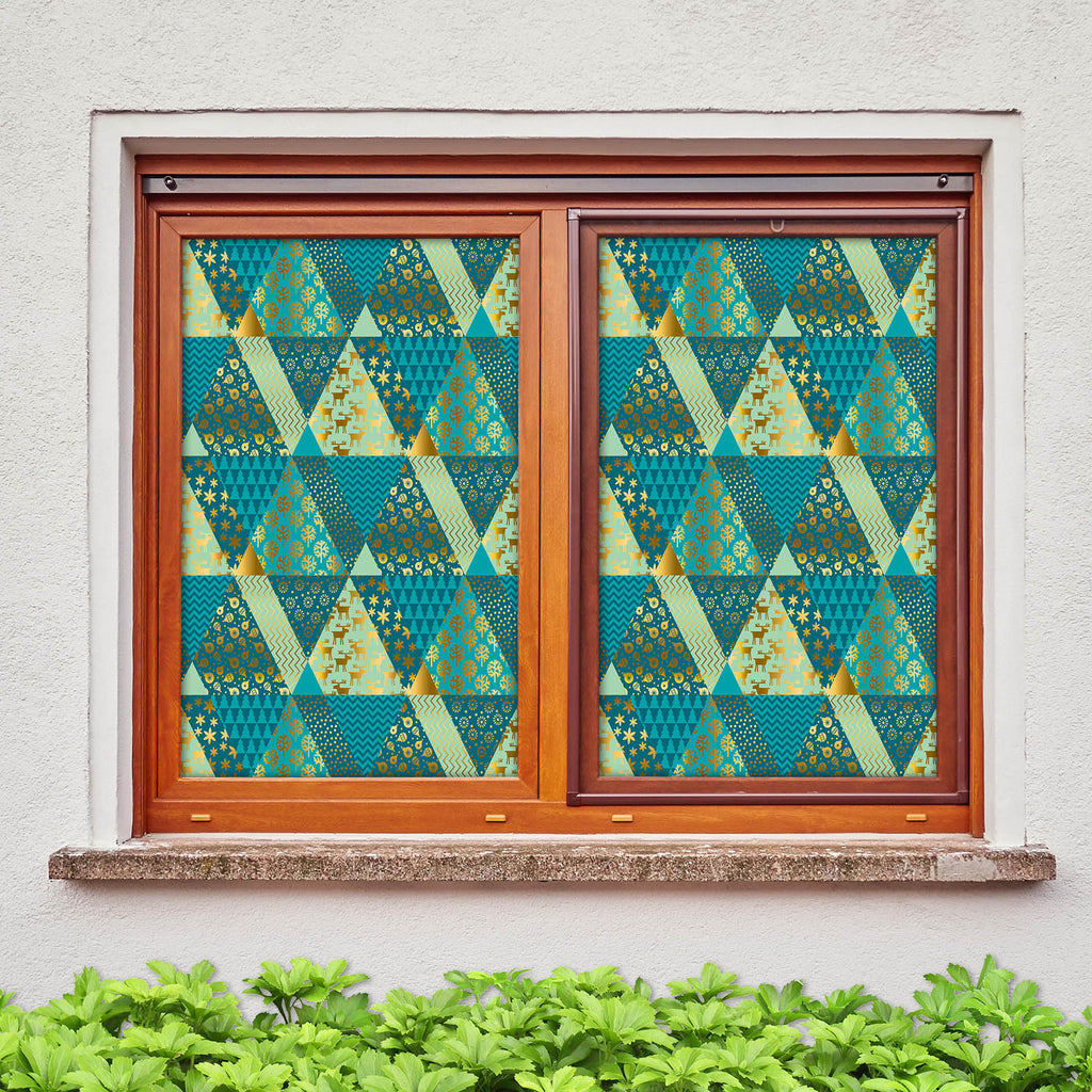 3D Green Triangle Pattern 30061 Christmas Window Film Print Sticker Cling Stained Glass Xmas