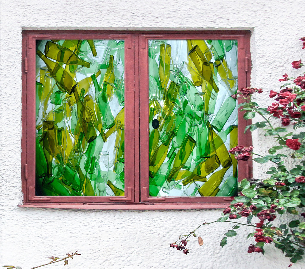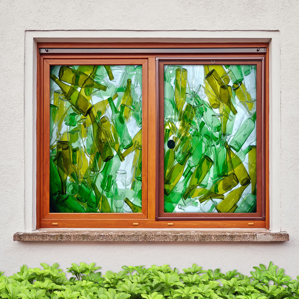 3D Green Wine Bottle 180 Window Film Print Sticker Cling Stained Glass UV Block