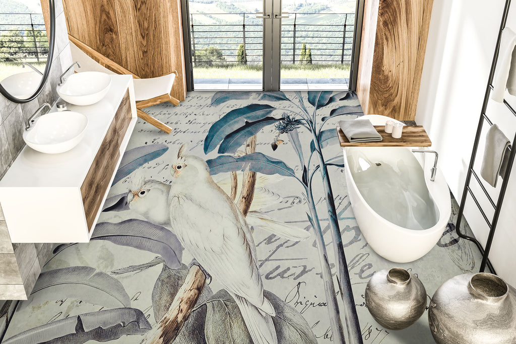 3D Leaves White Parrot 104161 Andrea Haase Floor Mural Sinsin