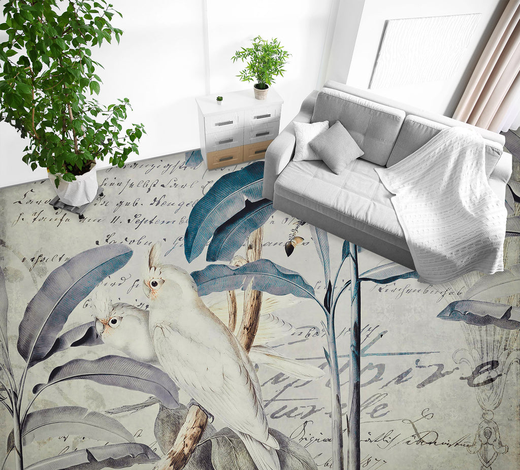 3D Leaves White Parrot 104161 Andrea Haase Floor Mural Wallpaper Murals Self-Adhesive Removable Print Epoxy