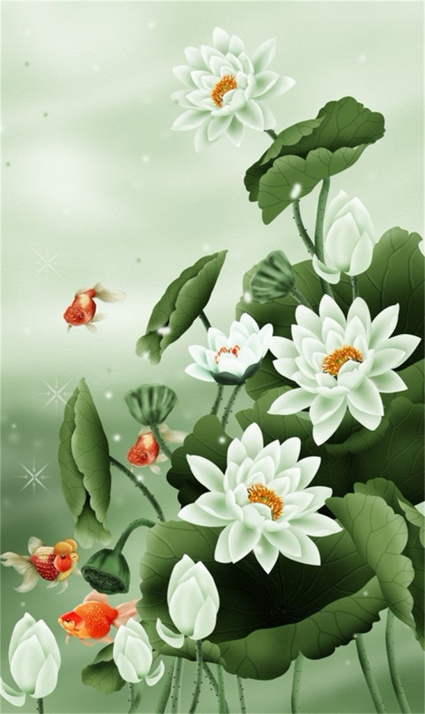3D Lotus Flowers And Fishes 485 Stair Risers