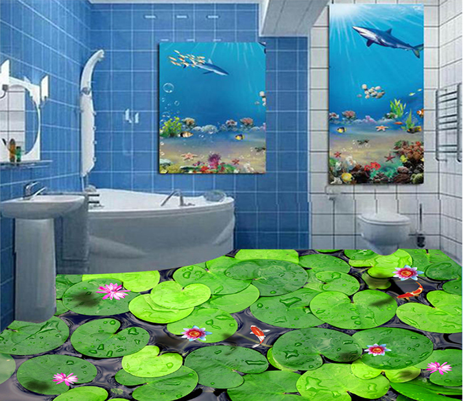 3D Lotus Leaf 048 Floor Mural Self-Adhesive Sticker Bathroom Non-slip Waterproof Flooring Murals