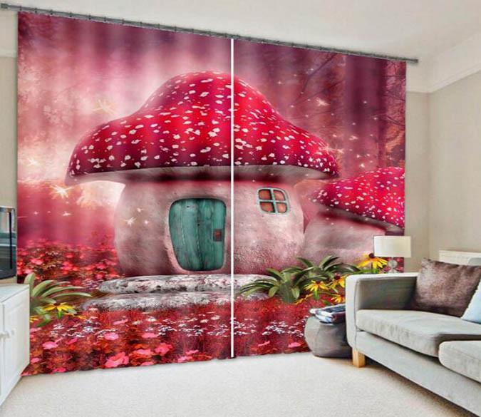 3D Lovely Mushroom Houses 910 Curtains Drapes