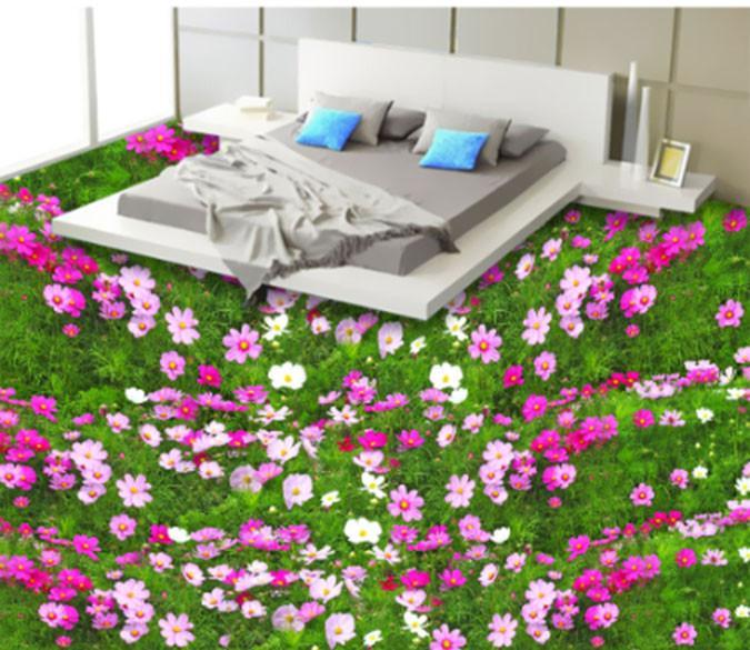 3D Lush Green Grass Flower Floor Mural