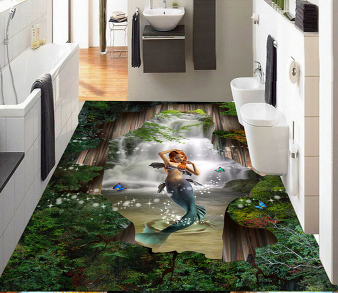 3D Mermaid 105 Floor Mural Self-Adhesive Sticker Bathroom Non-slip Waterproof Flooring Murals