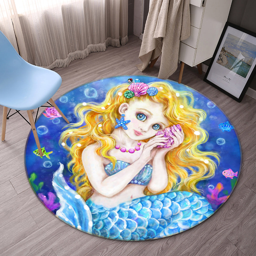3D Mermaid Bubble 6034 Kayomi Harai Rug Round Non Slip Rug Mat Amy