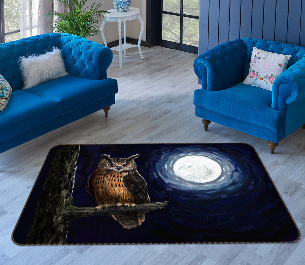 3D Moon Owl 126 Animal Non Slip Rug Mat