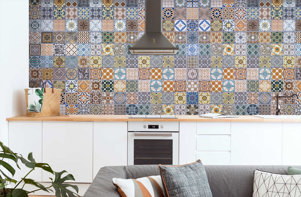 Make sure the wall surface is flat, clean and smooth. A clean and dry wall will help the adhesive from your wall mural to keep its stickiness. Put all panels on the ground, check the order. Measure and write down the dimensions of each panel. Mark vertical guidelines according to the panel's dimensions. Leave 2-3cm overlap between panels.