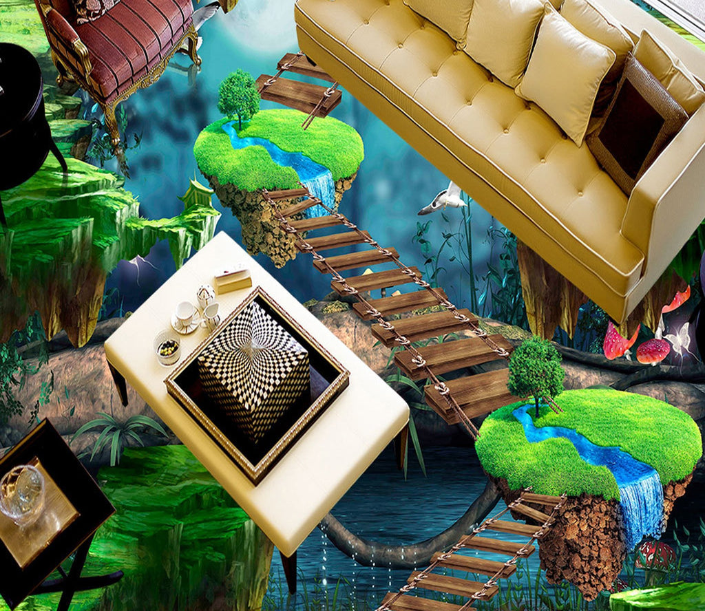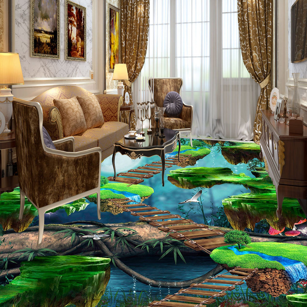 3D Mountain Bridge WG660 Floor Mural Self-Adhesive Sticker Bathroom Non-slip Waterproof Flooring Murals