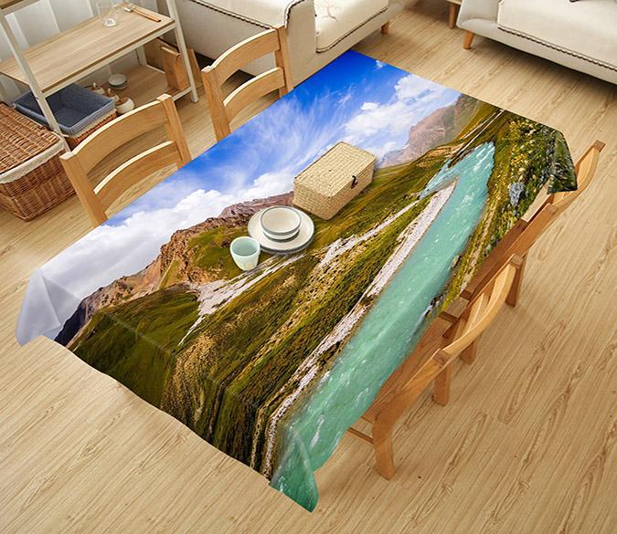 3D Mountain Valley River 607 Tablecloths