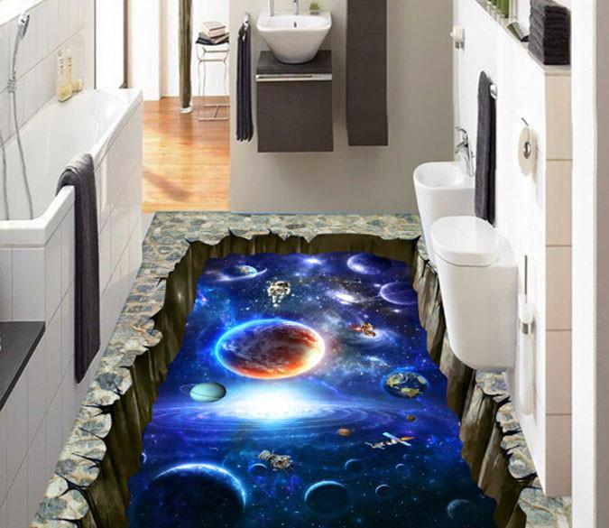 3D Night Sky Planet Star Non-slip, Waterproof  & Removable Rug Mat & Floor Murals