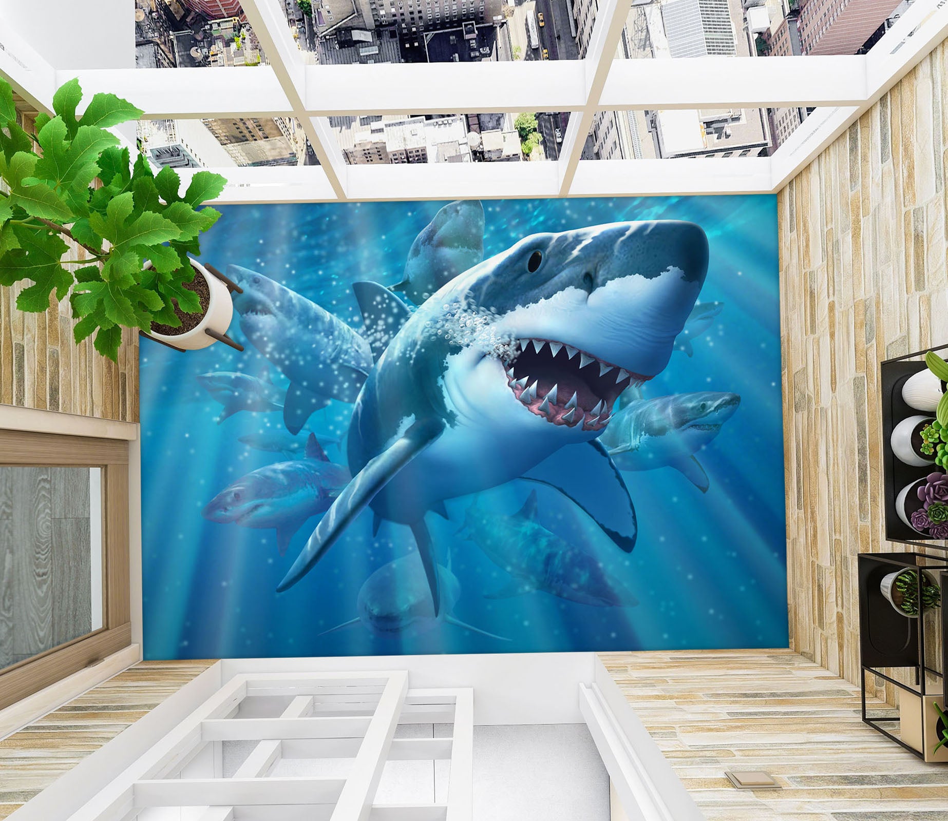 3D Ocean Shark 96221 Jerry LoFaro Floor Mural Wallpaper Murals Self-Adhesive Removable Print Epoxy
