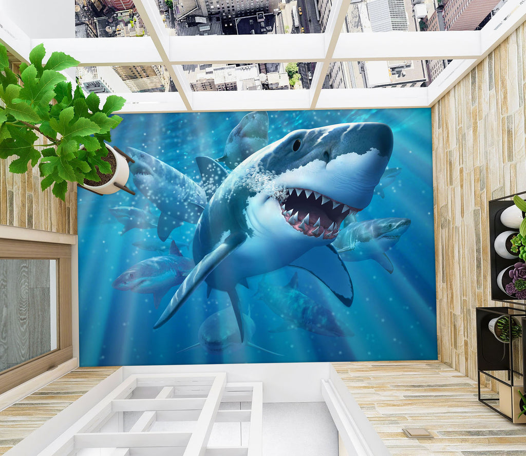 3D Ocean Shark 96221 Jerry LoFaro Floor Mural Sinsin