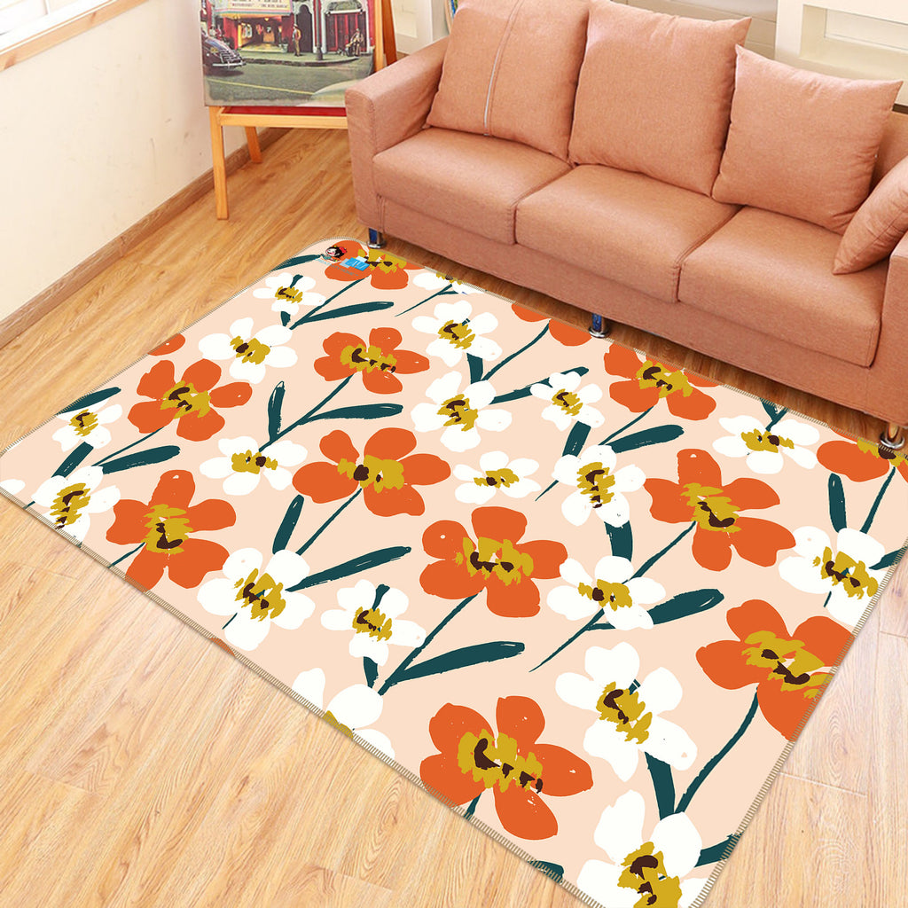 3D Orange White Flowers 10764 Kashmira Jayaprakash Rug Non Slip Rug Mat Sinsin