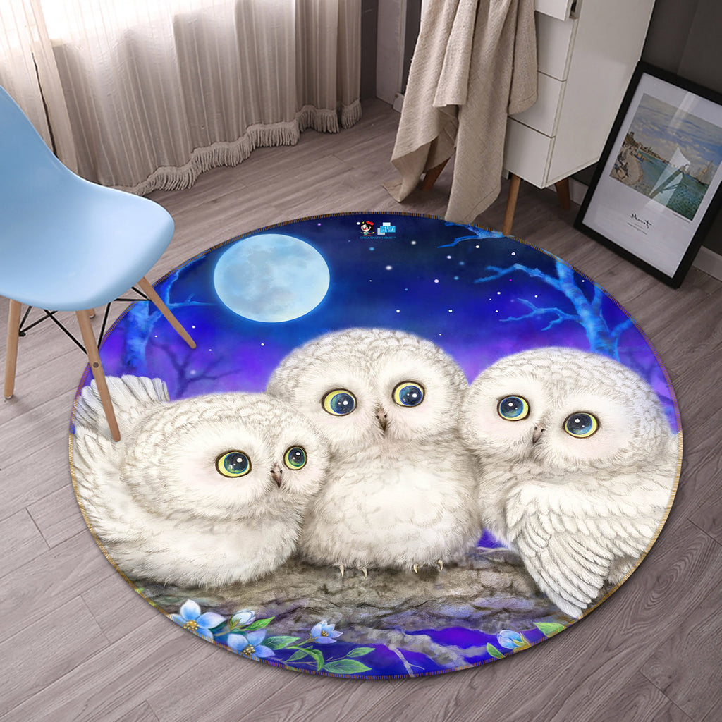 3D Owl Moon 6049 Kayomi Harai Rug Round Non Slip Rug Mat Amy