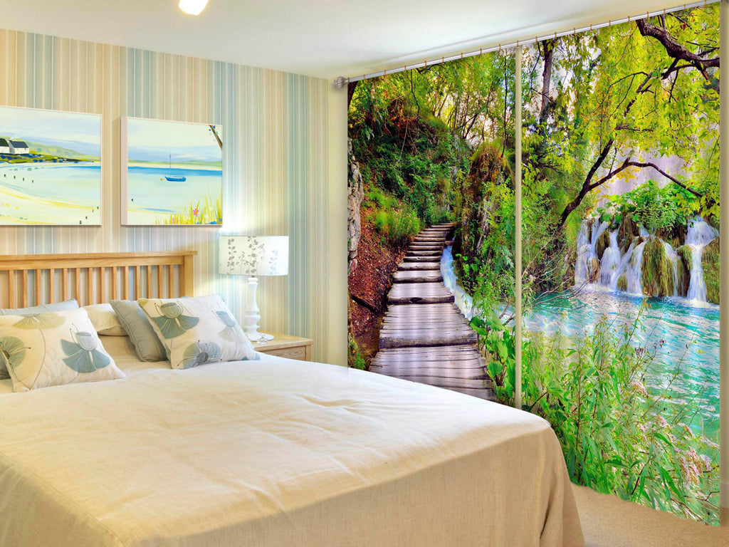 3D Park Wooden Bridge 130 Curtains Drapes Dai