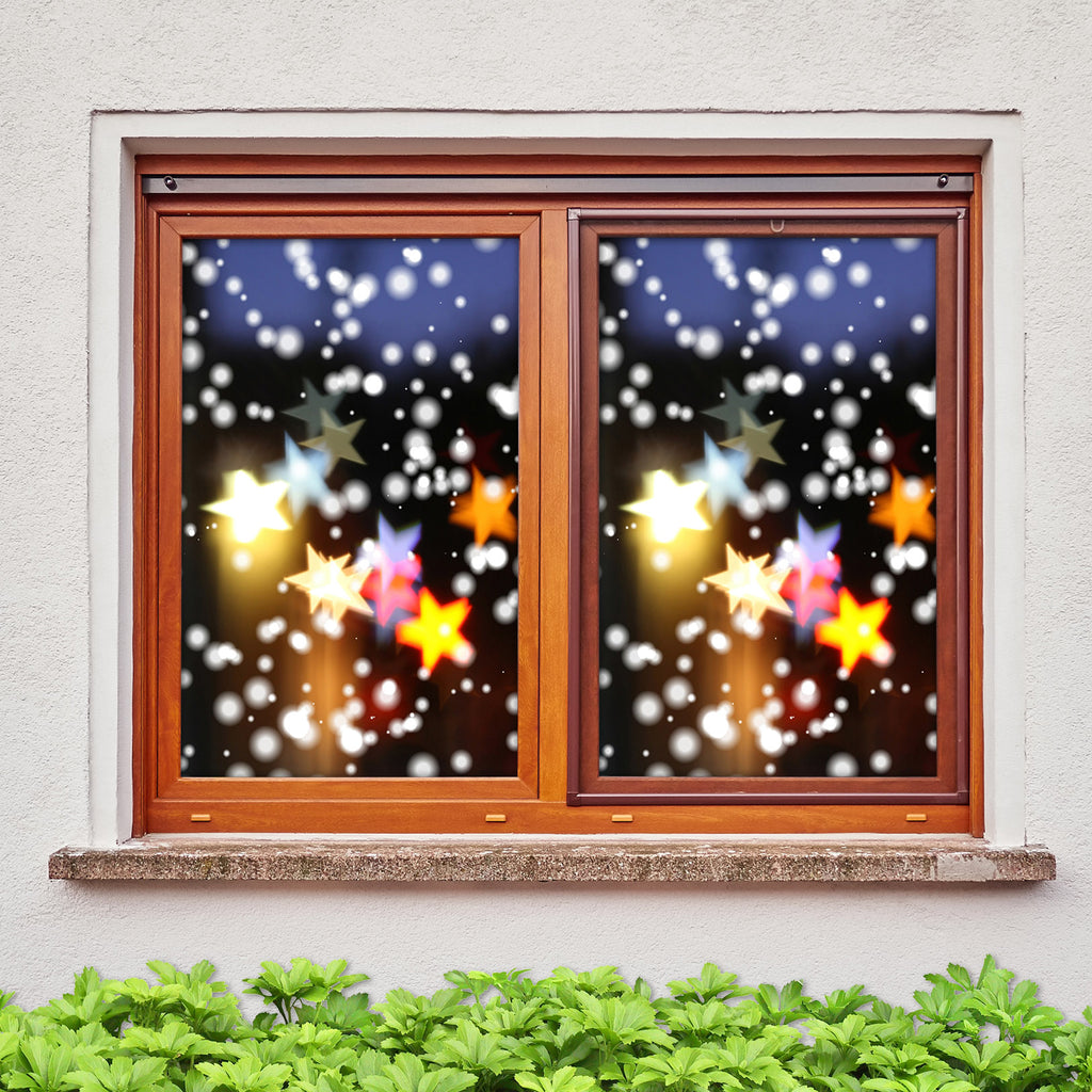 3D Pentagram Lights 31002 Christmas Window Film Print Sticker Cling Stained Glass Xmas