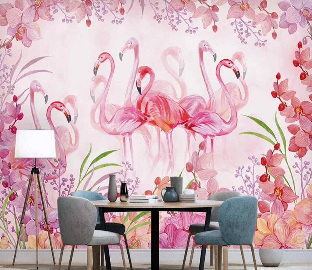 3D Pink Flamingos And Petals 2413 Wall Murals