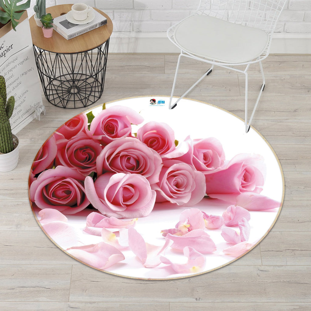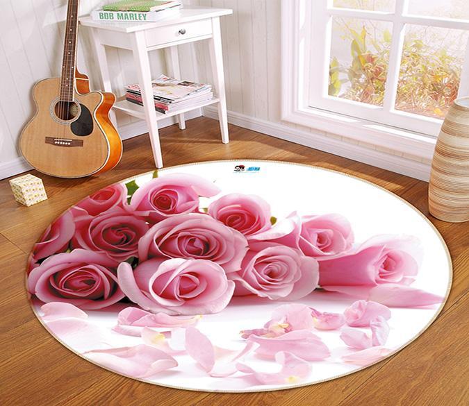 3D Pink Rose 061 Round Non Slip Rug Mat