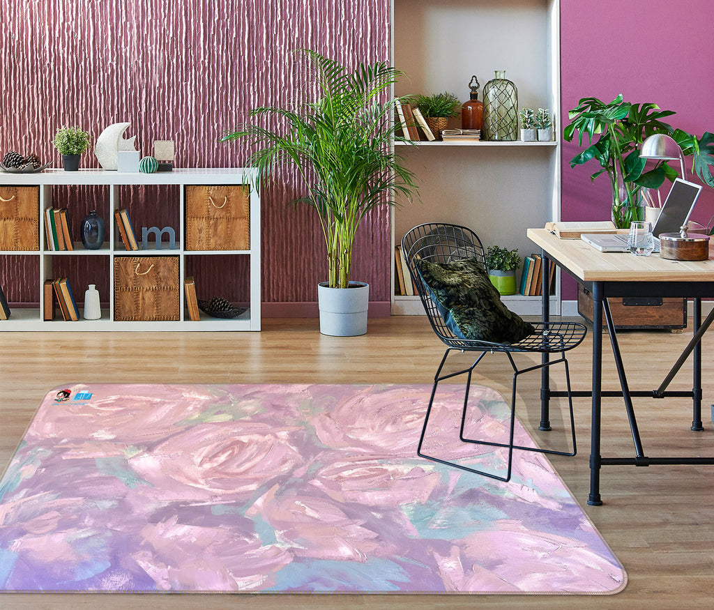 3D Pink Roses 3839 Skromova Marina Rug Non Slip Rug Mat Amy