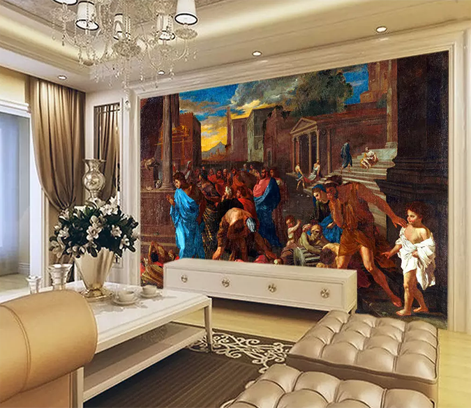 Make sure the wall surface is flat, clean and smooth. A clean and dry wall will help the adhesive from your wall mural to keep its stickiness. Put all panels on the ground, check the order. Measure and write down the dimensions of each panel. Mark vertical guidelines according to the panel's dimensions. Leave 2-3cm overlap between panels.