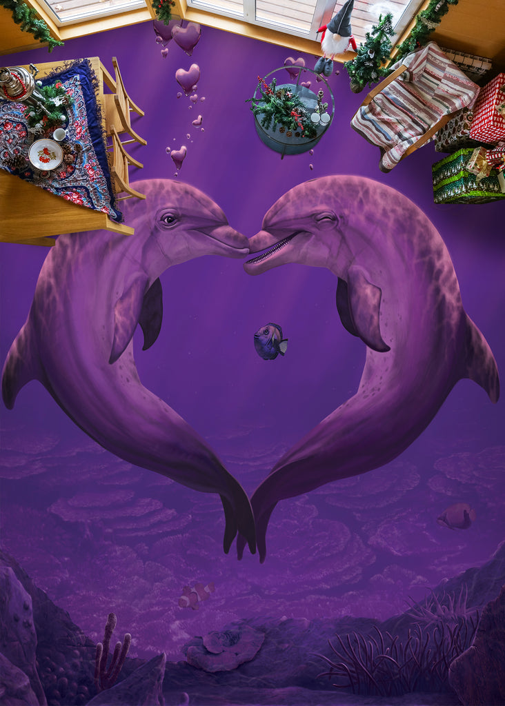 3D Purple Dolphin 98185 Vincent Floor Mural Sinsin