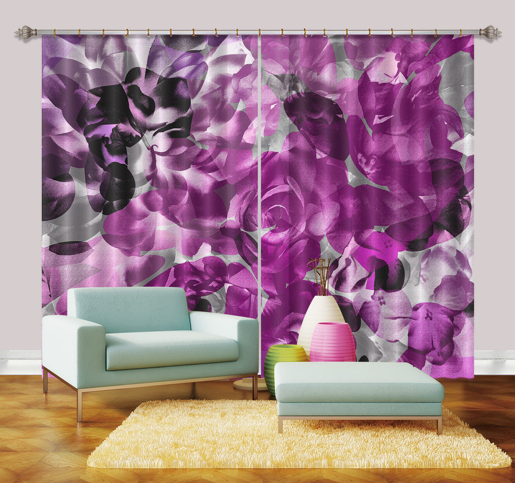 3D Purple Flowers 19174 Shandra Smith Curtain Curtains Drapes Sinsin