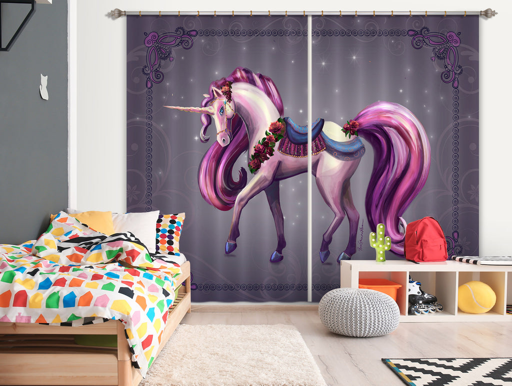3D Purple Unicorn 118 Rose Catherine Khan Curtain Curtains Drapes Dai