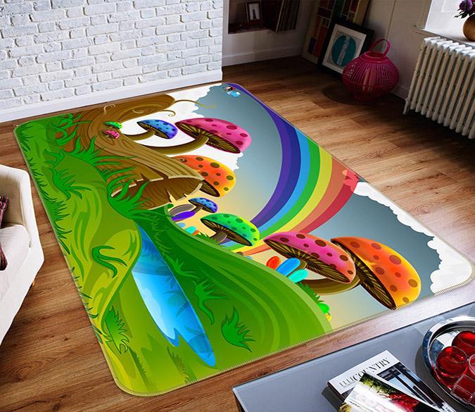 3D Rainbow Mushroom 493 Non Slip Rug Mat