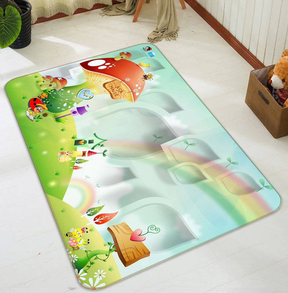 3D Rainbow Mushroom House 725 Non Slip Rug Mat