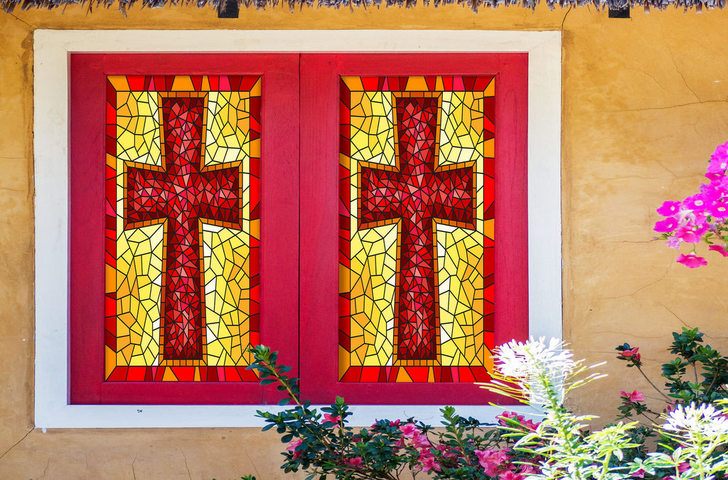 3D Red Cross 228 Window Film Print Sticker Cling Stained Glass UV Block Zoe