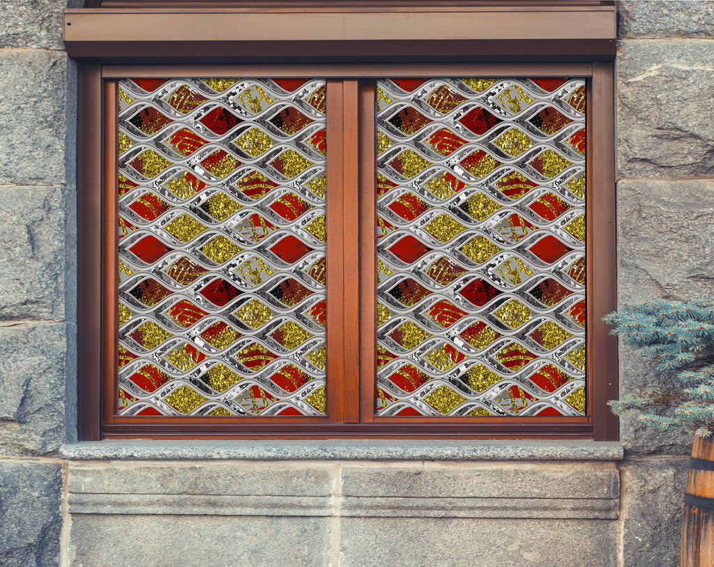 3D Red Diamond 204 Window Film Print Sticker Cling Stained Glass UV Block