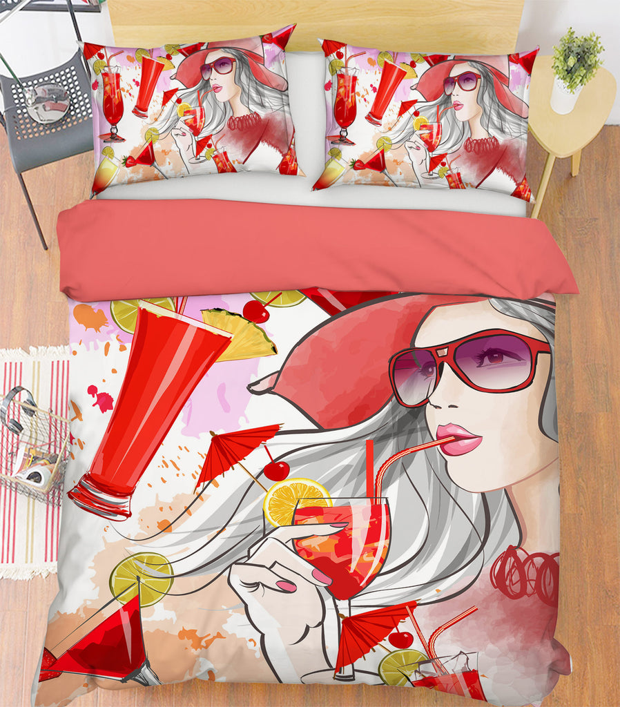 3D Red Drink Woman 036 Bed Pillowcases Quilt Zoe