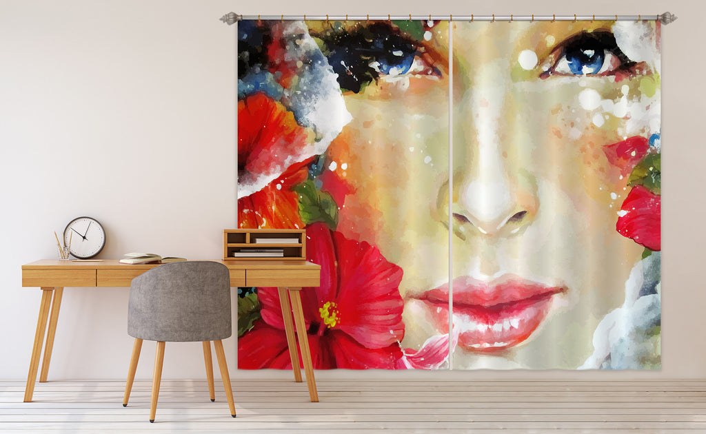 3D Red Lips Girl 764 Curtains Drapes Dai