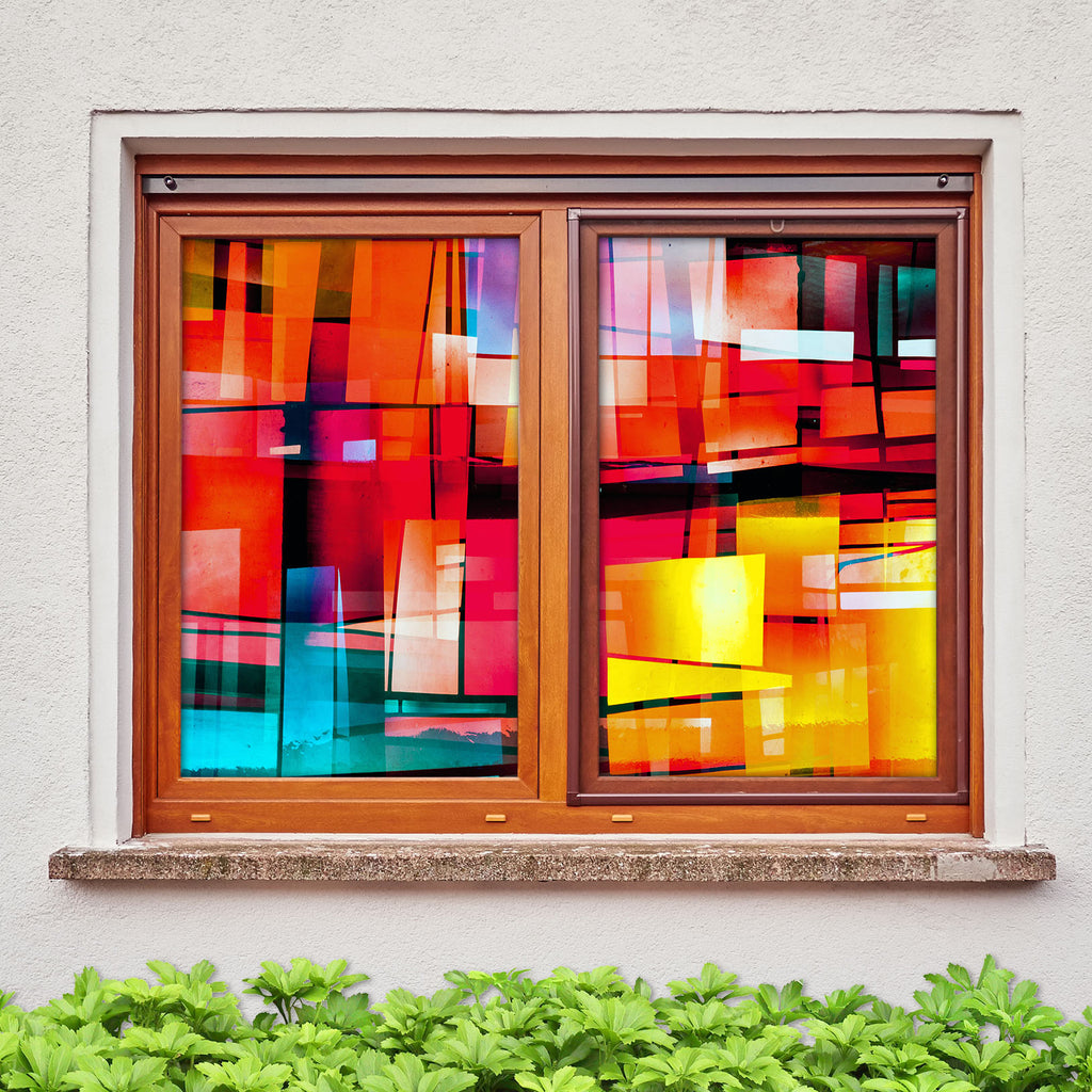 3D Red Square 204 Window Film Print Sticker Cling Stained Glass UV Block