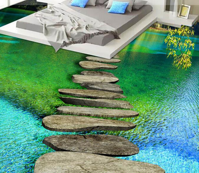 3D River Stone Path Floor Mural Non-slip, Waterproof & Removable Rug Mat & Floor Murals