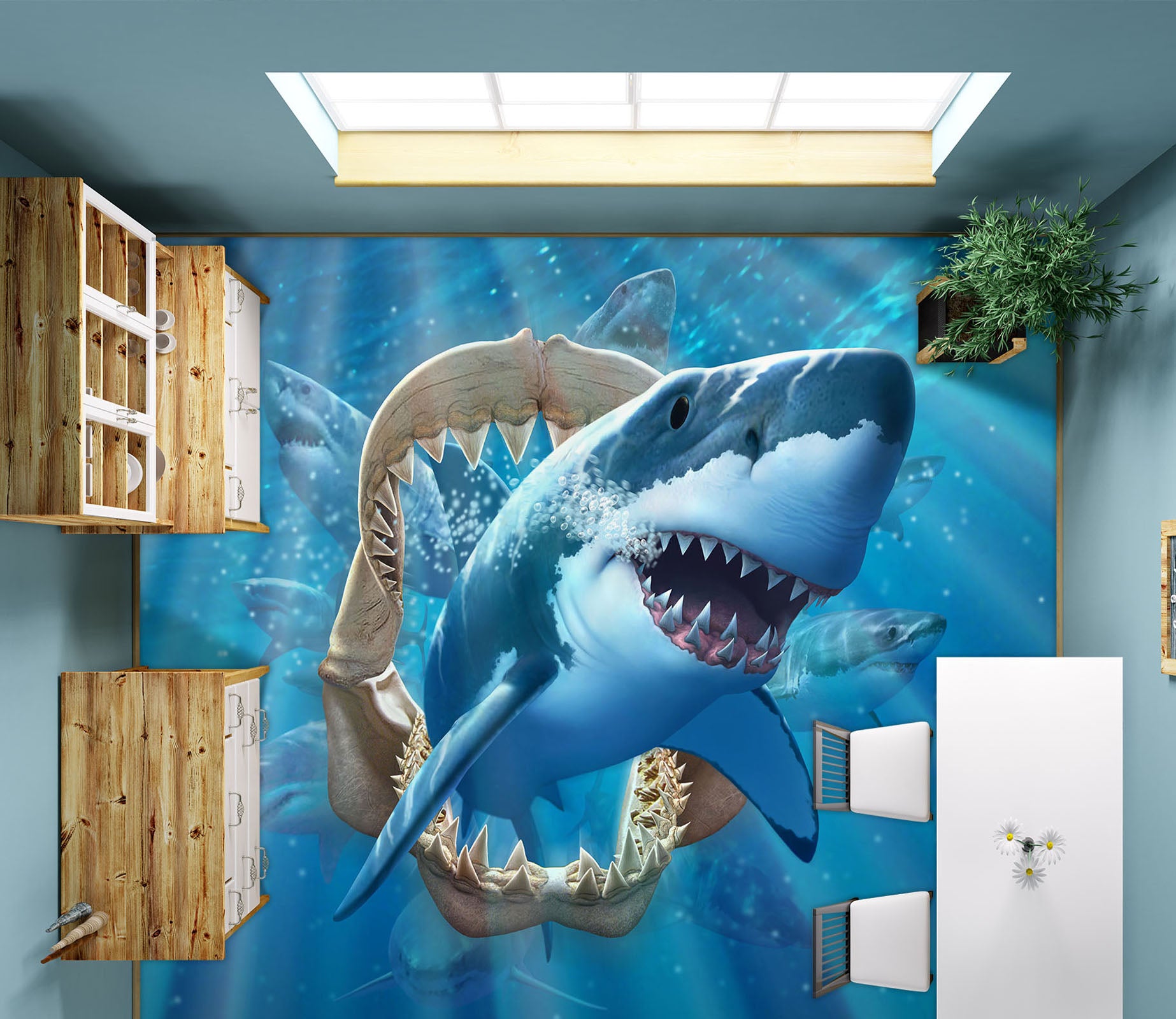 3D Shark 96220 Jerry LoFaro Floor Mural Sinsin