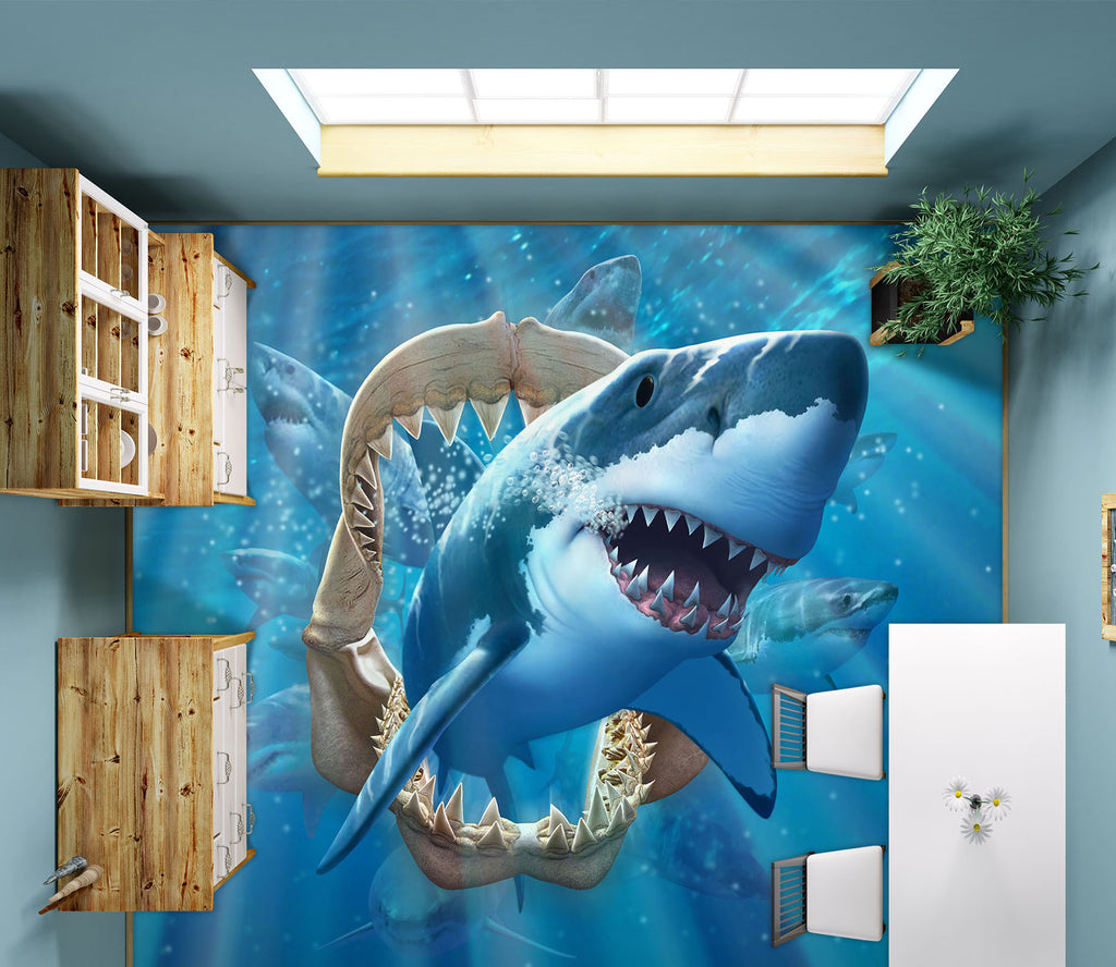 3D Shark 96220 Jerry LoFaro Floor Mural Wallpaper Murals Self-Adhesive Removable Print Epoxy