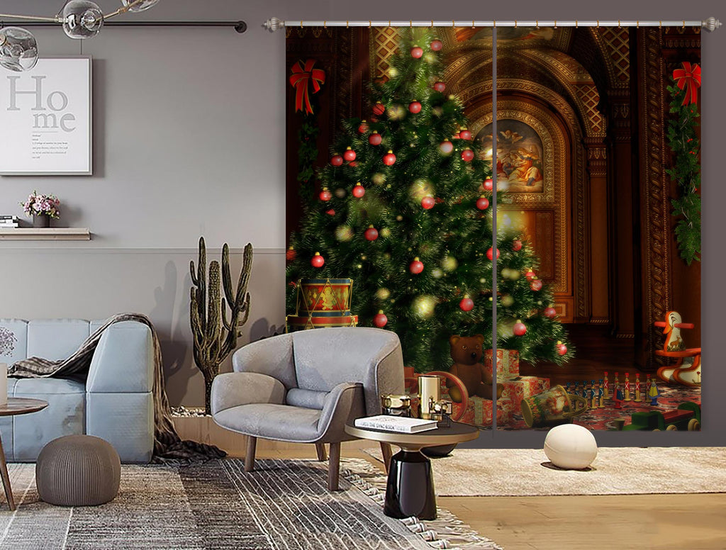 3D Shiny Tree 001 Christmas Curtains Drapes Xmas Sinsin