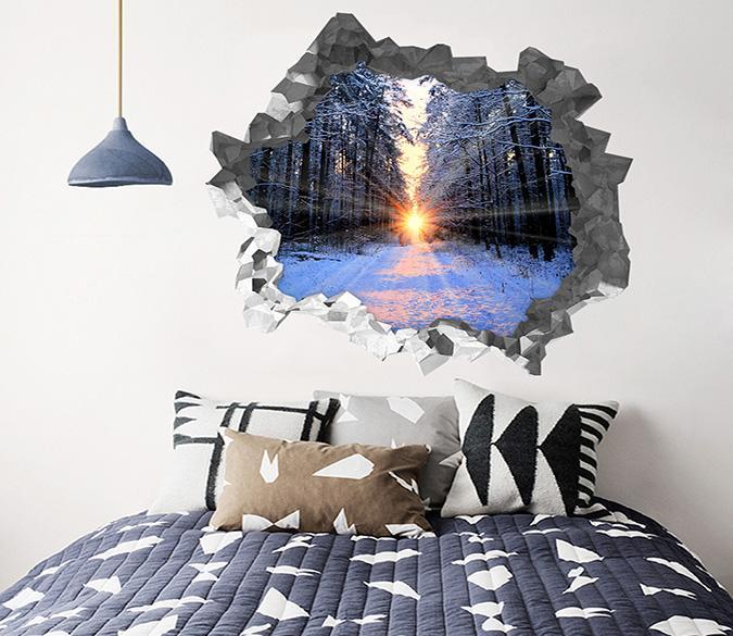 3D Snow Forest Bright Sunshine 193 Broken Wall Murals