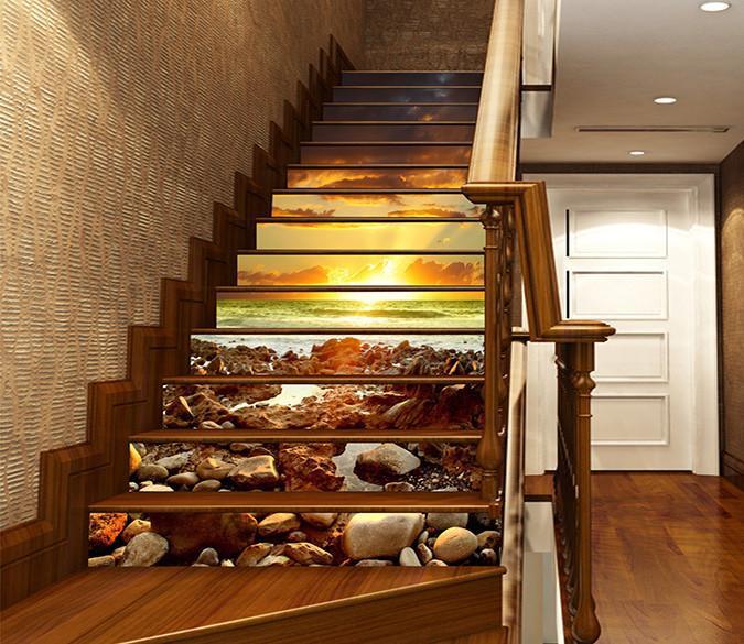 3D Stones Beach Bright Sunset 1464 Stair Risers