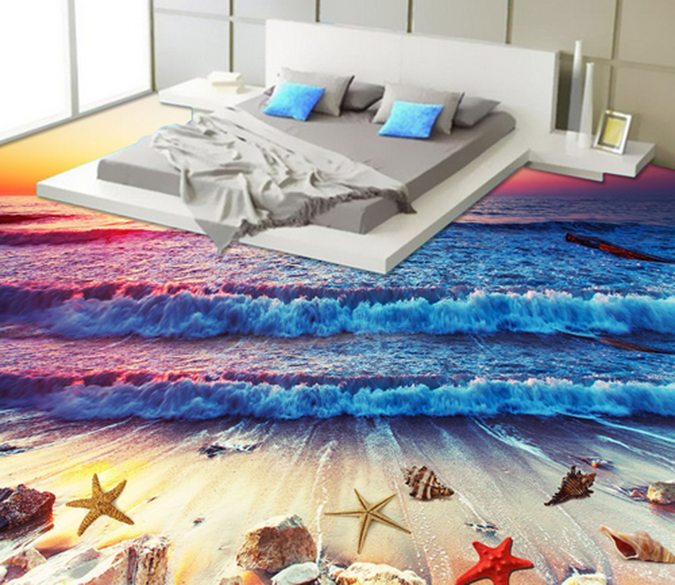 3D Sunset 029 Floor Mural Self-Adhesive Sticker Bathroom Non-slip Waterproof Flooring Murals