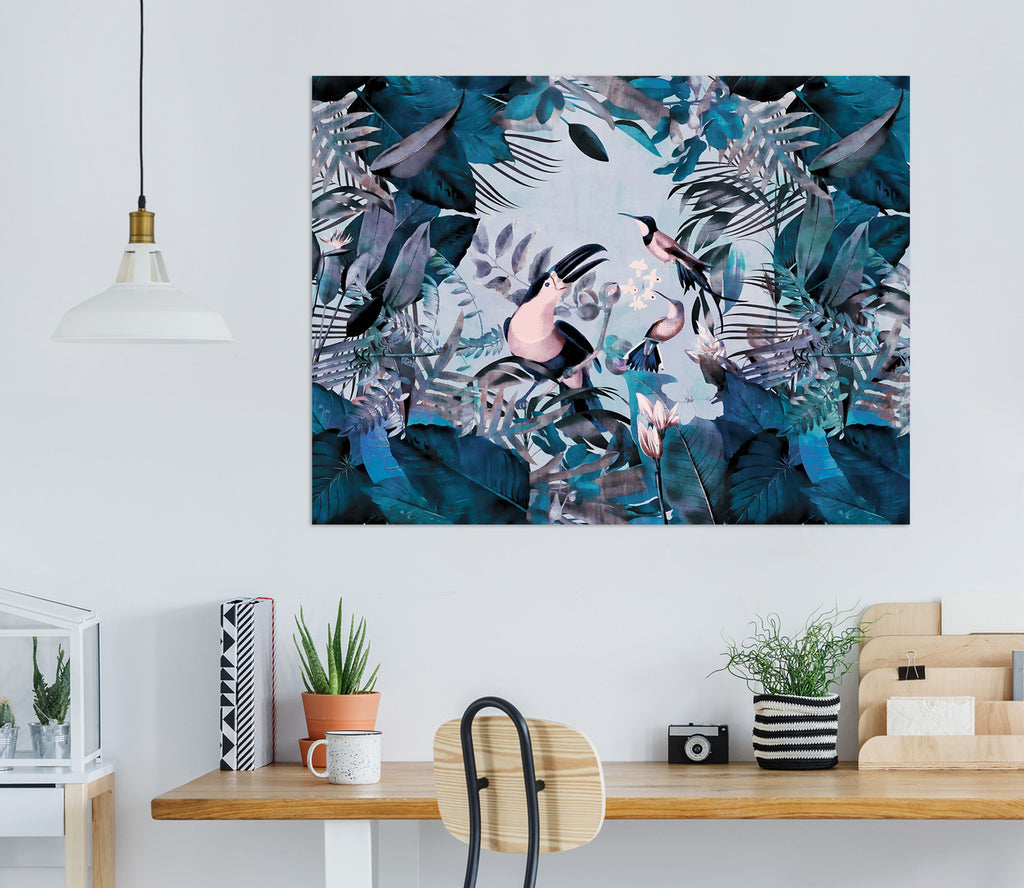 Make sure the wall surface is flat, clean and smooth. A clean and dry wall will help the adhesive from your wall mural to keep its stickiness. Put all panels on the ground, check the order. Measure and write down the dimensions of each panel. Mark vertical guidelines according to the panel's dimensions. Leave 2-3cm overlap between panels.