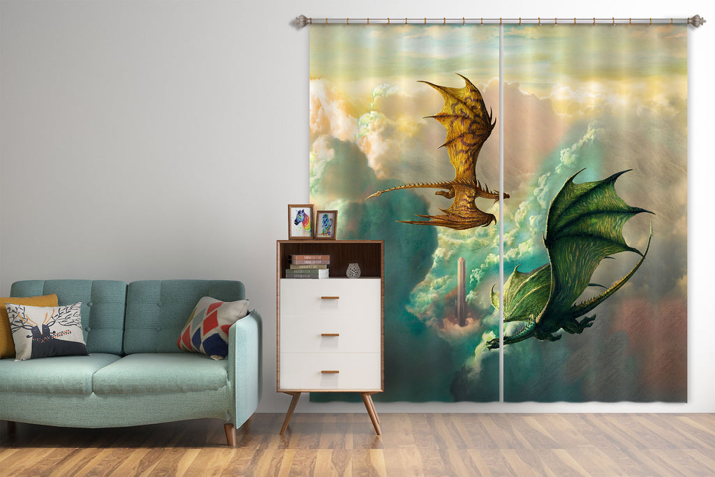 3D Tower Cloud Dragon 8032 Ciruelo Curtain Curtains Drapes Sinsin