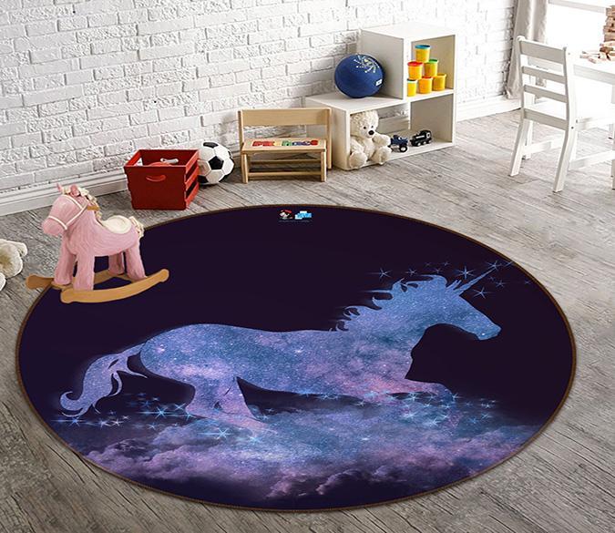 3D Unicorn Pattern 173 Round Non Slip Rug Mat
