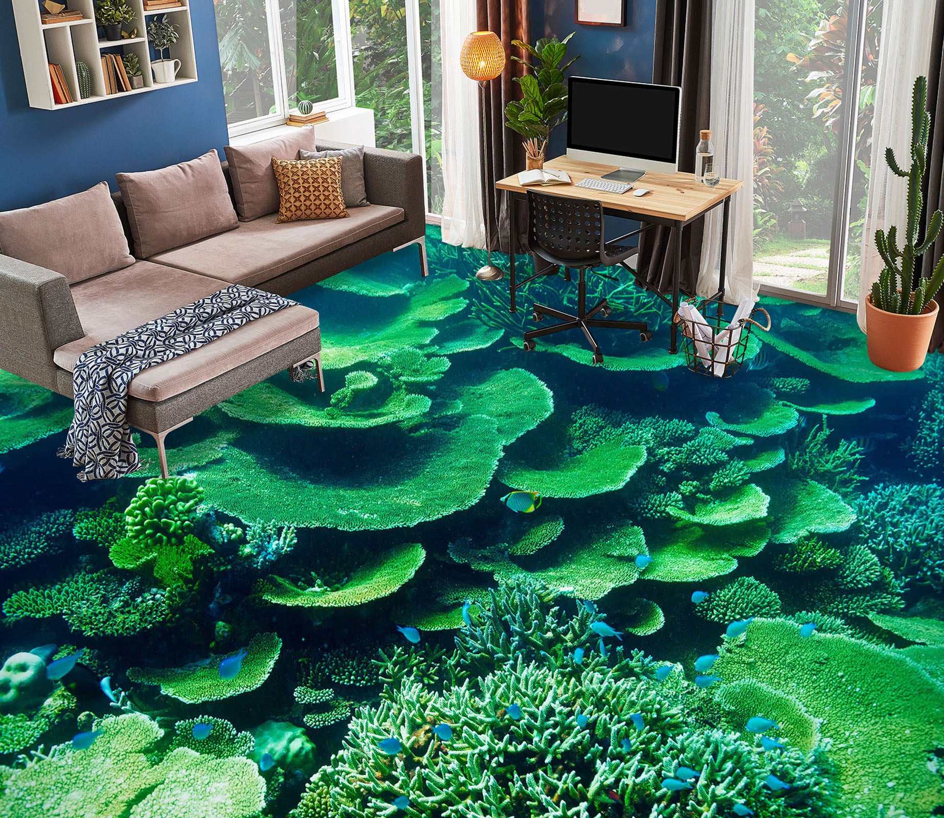3D Vivid Green Coral 1425 Floor Mural Wallpaper Murals Self-Adhesive Removable Print Epoxy