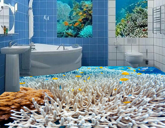 3D White Coral 058 Floor Mural Self-Adhesive Sticker Bathroom Non-slip Waterproof Flooring Murals