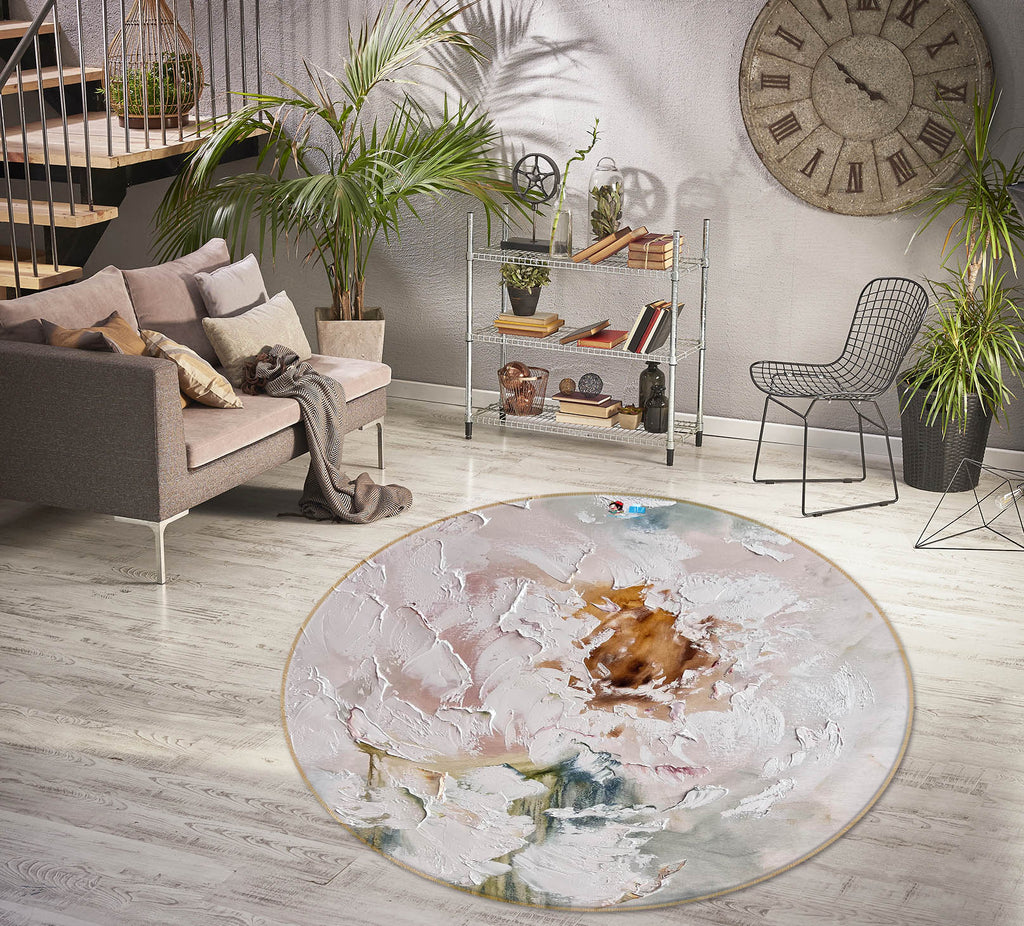 3D White Flower 4054 Skromova Marina Rug Round Non Slip Rug Mat Amy